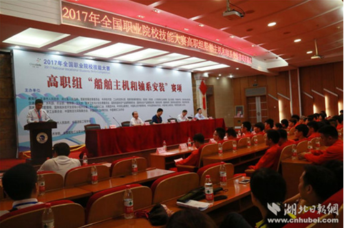 教育部职成司副巡视员葛维威最后发表重要讲话。他指出,全国职业院校技能大赛是我国职业教育的一项重大制度设计和创新,2008年以来连续成功举办,今年已是第十届。十年来,大赛受到社会各界广泛关注,影响力越来越大,赛事体系和办赛机制逐步完善。大赛有力促进了职业教育产教融合、校企合作,引领了专业建设和教学改革,推动了区域职业教育协调发展,展现了职业教育改革创新的成果,搭建了职业教育与产业之间多元合作的平台,成为中国特色职业教育的品牌。今天湖北分赛区举办的“船舶主机与轴系安装”赛项,正是职业教育服务先进制造业的重要体现,更是来自14个地区的选手大展风采的直接舞台。希望赛区、学校、裁判、老师、同学恪尽职守,展现风采,办出一届“精彩、专业、安全、廉洁”的大赛,为党的十九大献礼。