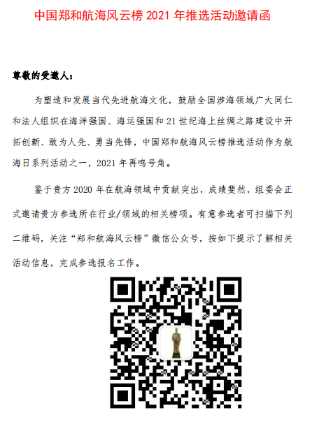 郑和航海风云榜推选活动是由海事服务网(CNSS)组织开展的航海文化与精神文明建设活动。主办单位为海事服务网,主管单位为交通运输部水运科学研究院、华洋海事中心有限公司,支持单位包括郑和研究会、中国航海学会、中国海洋学会、中国港口学会、中国造船工程学会、中国水运建设行业协会、中国交通企业管理协会、中国船东协会、海峡两岸航运交流协会、上海航运交易所、中国海事服务中心等,其行业影响力巨大。