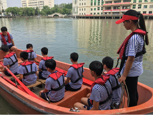在参赛的12支队伍中,有来自2016级船舶电子电气工程专业的唯一一名女队长刘晨晨说:“很高兴在去年成为这个专业的第一个女生,也很荣幸作为队长参加了精通艇筏比赛,相信通过这个比赛能够增强班级的凝聚力。我也希望在这里能够向新生传达我们船院人的精神和理想。希望2017级新生能够从这里启航,驶向深蓝色的大海,为实现“海洋强国”而奋斗,请记住,我们的征程是星辰大海。”
