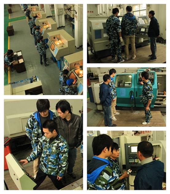 近日,我校首届湖北省普通高校招收中职毕业生机械类统一技能操作考试入学的11121、11122班的同学在现代制造中心参加实训,这两个班的同学经过两周的数控车床的基础训练后,基本掌握了数控加工工艺和加工方法,在现场的加工中心实训指导老师着重强调安全,让每一个参与实训的学生树立强烈的安全意识。在实训过程中,一方面在理论上详细讲解加工方法及加工注意事项,另一方面,在实训操作现场引导学生完成老师下达的任务,直到每一个学生都能独立完成每天的学习任务。通过学习同学们都能很快的上手操作设备,虽然在加工过程中遇到了不少的问题,但是他们还是在实训老师的指导下以较好的质量完成了工作任务,并得到了多位老师的一致好评。