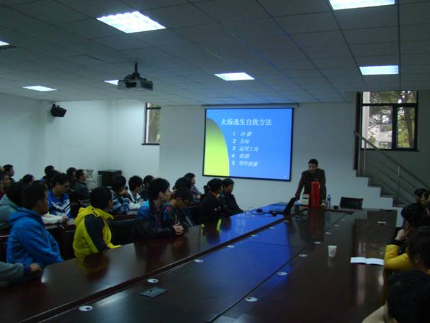冬季是火险高发季,确保学院后勤安全稳定是我们应尽的责任。查找安全隐患,掌握消防应急技能是我们喜迎十八大的具体行动。11月8日下午4:00时,后勤集团组织宿舍、食堂、配电、学生义务消防队员等后勤职工在院办公楼一楼会议室举办消防知识培训和演练,会议特邀请了武汉市消防安全宣传服务中心刘教官、保卫处、图书馆等部门职工参加。