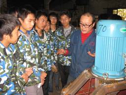 校历第九周(10.29—11.2),钳工技术中心根据教学安排,结合车间生产实际情况,挑选了多名钳工技能掌握比较熟练,接受能力较强的同学到机具车间进行ZJ-200L型制浆机产品零件钳工工序的生产加工。实训教师首先强调安全,强化他们的安全意识,并在做完示范后,指导学生进行产品零件的加工,直至他们能独立完成工作。(工业中心 黄菱)