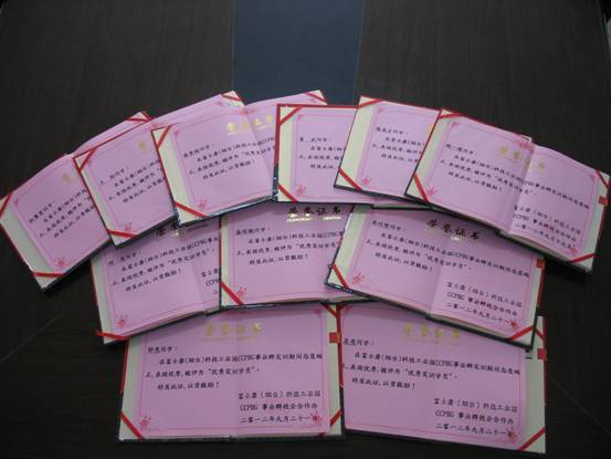 学生进入富士康后,被分配到检测、组装等工作岗位,克服了生产中遇到的诸多困难,如:工作简单机械、劳动强度大、处理问题简单情绪化,以坚强的毅力、顽强的精神,战胜困难、战胜自我,通过自己的辛勤劳动,赚得了他们人生的“第一桶金”。同学们吃苦耐劳的精神、认真负责的态度以及团结协作的工作作风得到了富士康生产管理领导的一致认可和赞扬!我校学生良好的组织性和纪律性得到了富士康领导和员工的极大赞许!工学交替结束前夕,富士康CCPBG事业群评选了35名学生为“优秀实训学员”,颁发了荣誉证书。