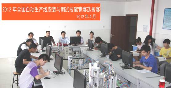 4月27日下午四点,电气学院按计划组织了2012年全国职业院校技能大赛高职组-自动化生产线安装与调试技能竞赛的校内选拔赛。电气学院党总支书记姚新、副书记郭小军、副院长冯常奇等出席了此次选拔赛,他们发表讲话鼓励参赛选手不仅要在选拔赛中赛出好成绩,在以后的培训练习中要能克服困难,努力钻研、刻苦练习,争取在全国大赛中取得优异的成绩,为自己和学校争光。机电教研室相关老师担任了裁判工作。