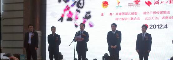 本次启动仪式由湖北省教育厅、省学联、万达集团武汉分公司、中国联通武汉分公司联合举办。在启动仪式上,团省委书记朱厚伦发表讲话,强调要把大学生社团文化活动与贯彻党的十七届六中全会精神以及当代文化需求紧密结合起来,团结、吸引和凝聚广大青年学生参与到社团活动中来。