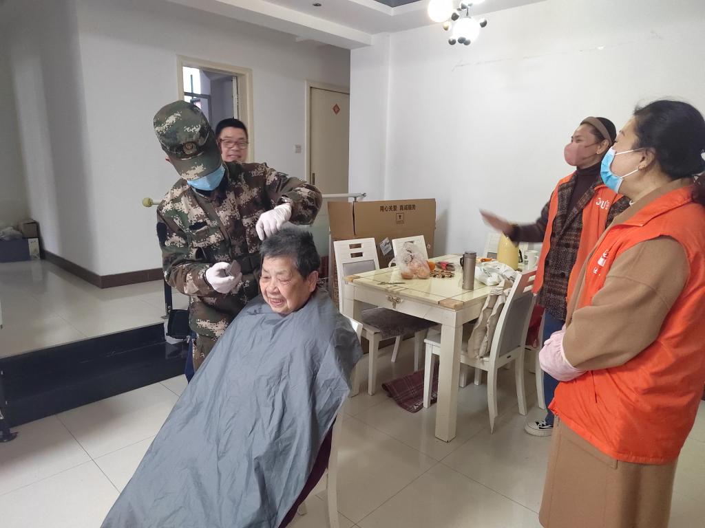 对于行动不便的老人,理发小组还组建了上门服务小分队,跟随社区工作人员一一上门走访。