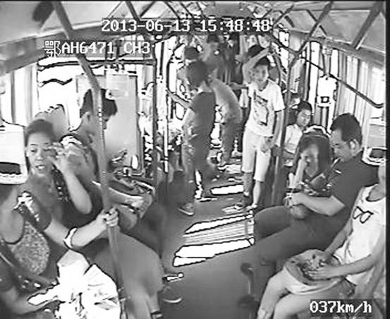 6月13日15时48分48秒:发现女青年异常,姚作霖和周雪东赶紧探身将她扶住,10秒钟后,姚作霖跑向驾驶台通知司机刘玉潮,刘玉潮在前方能够停车的琴台大道十字路口停车,随后起身到车厢中部查看,同时拨打电话报警。