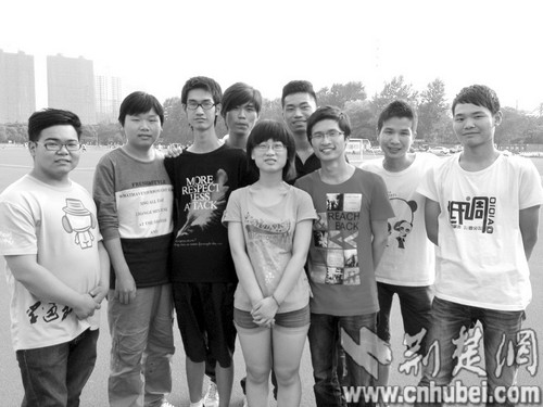 图为:救人的9名大学生从左到右分别是:姚作霖、李峰、周勇、文德麟、李潇潇、罗权、杨承杰、周雪东、曹思明