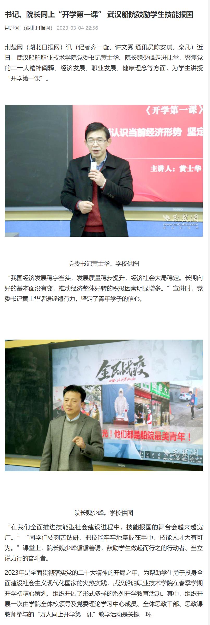 荆楚网:书记、院长同上“开学第一课” 武汉船院鼓励学生技能报国
