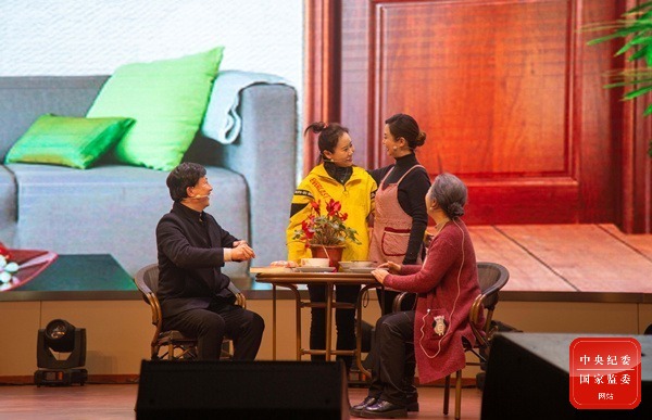 江苏省高邮市举办“传文明家风 建廉美家园”第二届家庭文化节活动,推动廉洁家风教育到机关、到家庭、到家人,现场200余名干部家属接受了一场廉洁教育。图为活动现场表演的家风节目故事《升学宴》剧照。(江苏省高邮市纪委监委 欧阳书兰 摄)