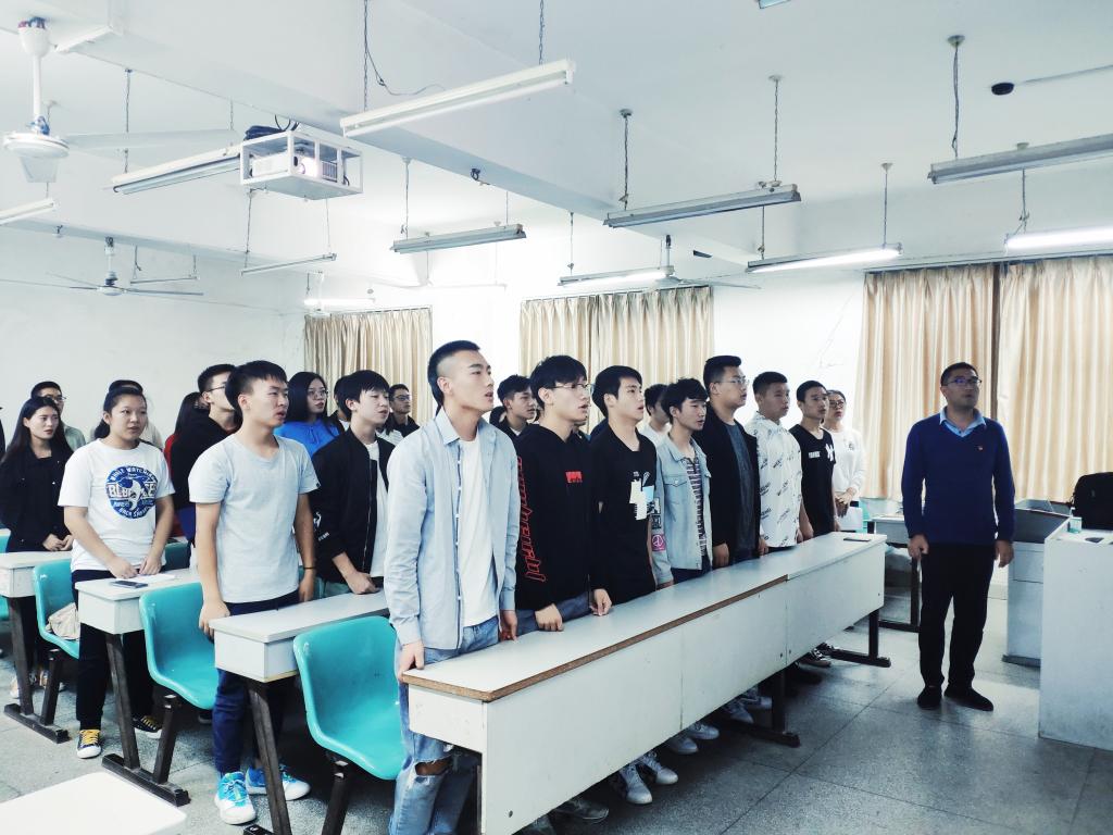 会议伊始,由学生党支部书记赵平飞同志带领全体学员齐唱国歌。