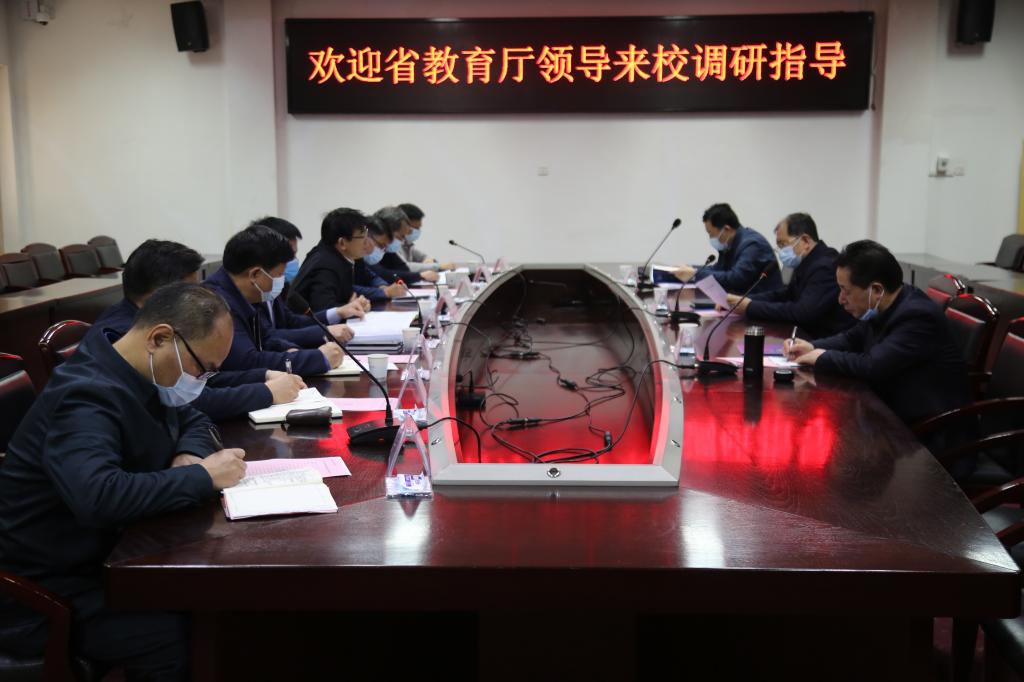 本网讯 3月11日上午,省委教育工委副书记、省教育厅党组成员张幸平率职成处处长何泽云、副处长余弢莅临学院调研指导工作。学院领导班子全体成员及党办、院办、教务处负责同志陪同调研。