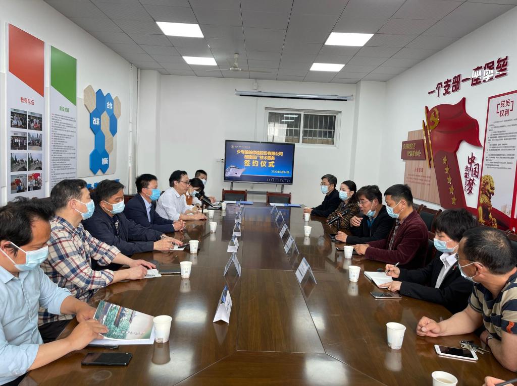签约仪式上,陈彬院长首先代表学校对少专船舶一行及省船舶工业行业协会领导的来访表示热烈的欢迎,对双方参会人员进行了介绍,并简要介绍了“新建船厂规划方案设计技术服务项目”实施情况。随后,省船舶工业行业协会秘书长张喜华、少专船舶公司总经理郑少专先后发表讲话,表达对本次校企合作充满信心,满怀憧憬。