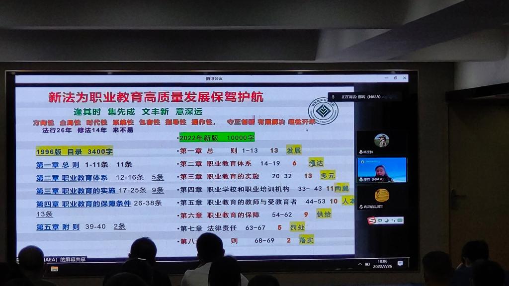 本次培训共分两个阶段,第一阶段培训为理论培训,涵盖了新职业教育法、师德师建设、德国职业教育标准、德国双元制、双高建设情况、创新教师团队建设、双元制本土化实践等主要内容;第二阶段培训为岗位实践。在第一阶段培训中,邢晖教授从“新法、新政、新格局、新策略”的视角,对“新职教法”的重点内容进行了解读;赵志群所长剖析了“现代教育体系和现代学徒制”的内涵,阐述了德国“双元制”职业教育相关标准;陈长江副书记和肖亚明副院长分享了“双高”建设背景下武汉船院人才培养、专业群建设等方面的探索与实践;陈晓荣副总监对德国职业资格认证和双元制质量保证进行了介绍,展示了德国双元制的特点;陈继权董事长从产教深度融合、共建产业学院的角度,对如何开展校企合作进行了经验交流;周兰教授分享了我院从团队管理模式、三教改革架构、岗课赛证模块化课程等方面进行本土化改革,打造“教师教学创新团队”的案例。
