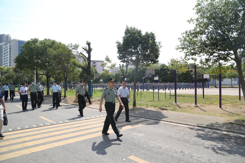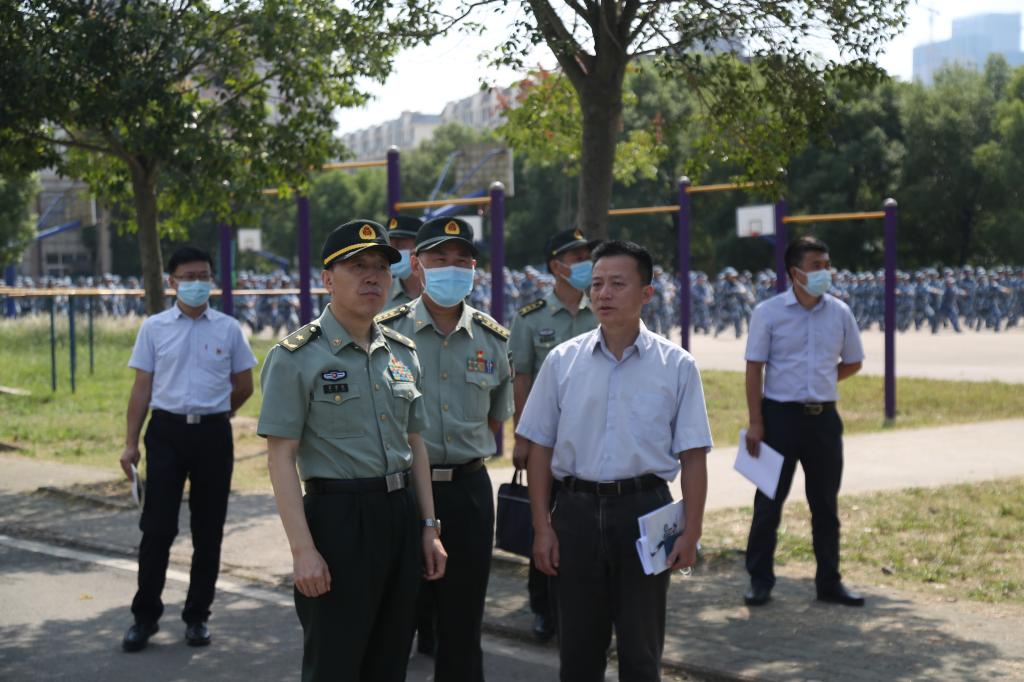 本网讯 9月24日上午,湖北省军区副司令员吕吉云、战备建设局副局长袁盛清,湖北省高校国防教育协会副秘书长丁国良,武汉警备区政委李家华,汉阳区人武部政委路庆伟一行到学院检查指导2021年新生军事训练工作。
