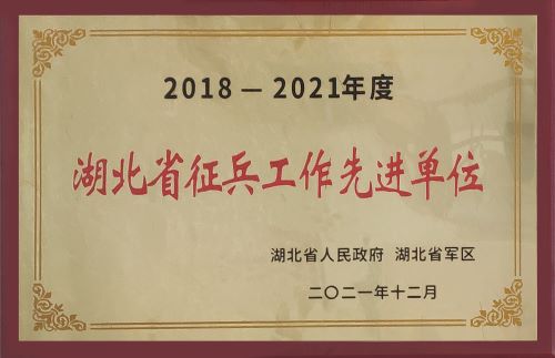 本网讯 近日,湖北省人民政府和湖北省军区对2018-2021年度全省征兵工作先进单位和先进个人予以通报表彰,学院再次荣获“湖北省征兵工作先进单位”称号。