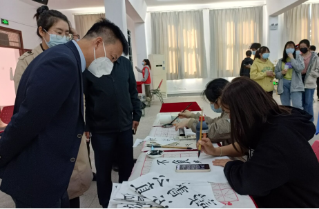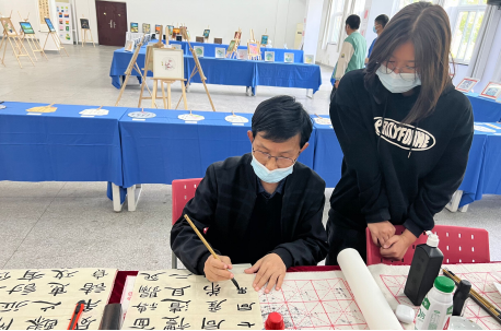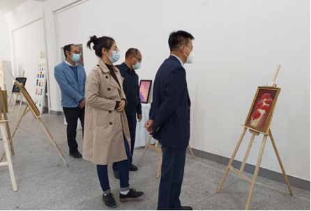 此次展览集中展示了我校40余个专业的150余名学生在美育实践课程和第二课堂中完成的优秀艺术作品。这些成果中门类丰富,既有西方经典艺术门类中的油画艺术形式,也有中华传统文化中的书法、汉秀、茶艺、女书、剪纸、扎染等民族文化瑰宝,同时还包含了彰显工匠精神的衍纸艺术、十字绣工艺、激光内雕等类型。魏院长饶有兴趣地观看了展览,并就作品的创意理念、制作过程、社会效用等与现场师生进行了细致交流,他指出,美育课程要坚持守正创新,要继续开展好各类课程的内涵建设,普及各类艺术文化知识的同时,还要不断培养和提升学生的创新能力,创新精神的培养是艺术之花绽放光彩的生命线,希望通过持续推进我校的美育建设为党和国家培养出更多的德智体美劳全面发展的社会主义建设者和接班人。