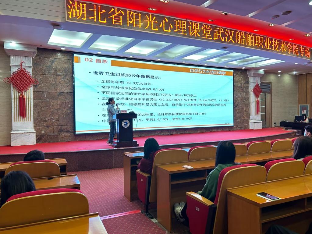 本网讯 为贯彻落实上级有关文件精神,引导学生培育自尊自信、理性平和、积极向上的心态,3月29日下午学生工作部在学术报告厅开展湖北省阳光心理课堂专场讲座,我院心理健康教育中心主任陈春晓老师做《生命教育与自杀预防》主题宣讲,2022级全体心理委员参加了此次讲座。
