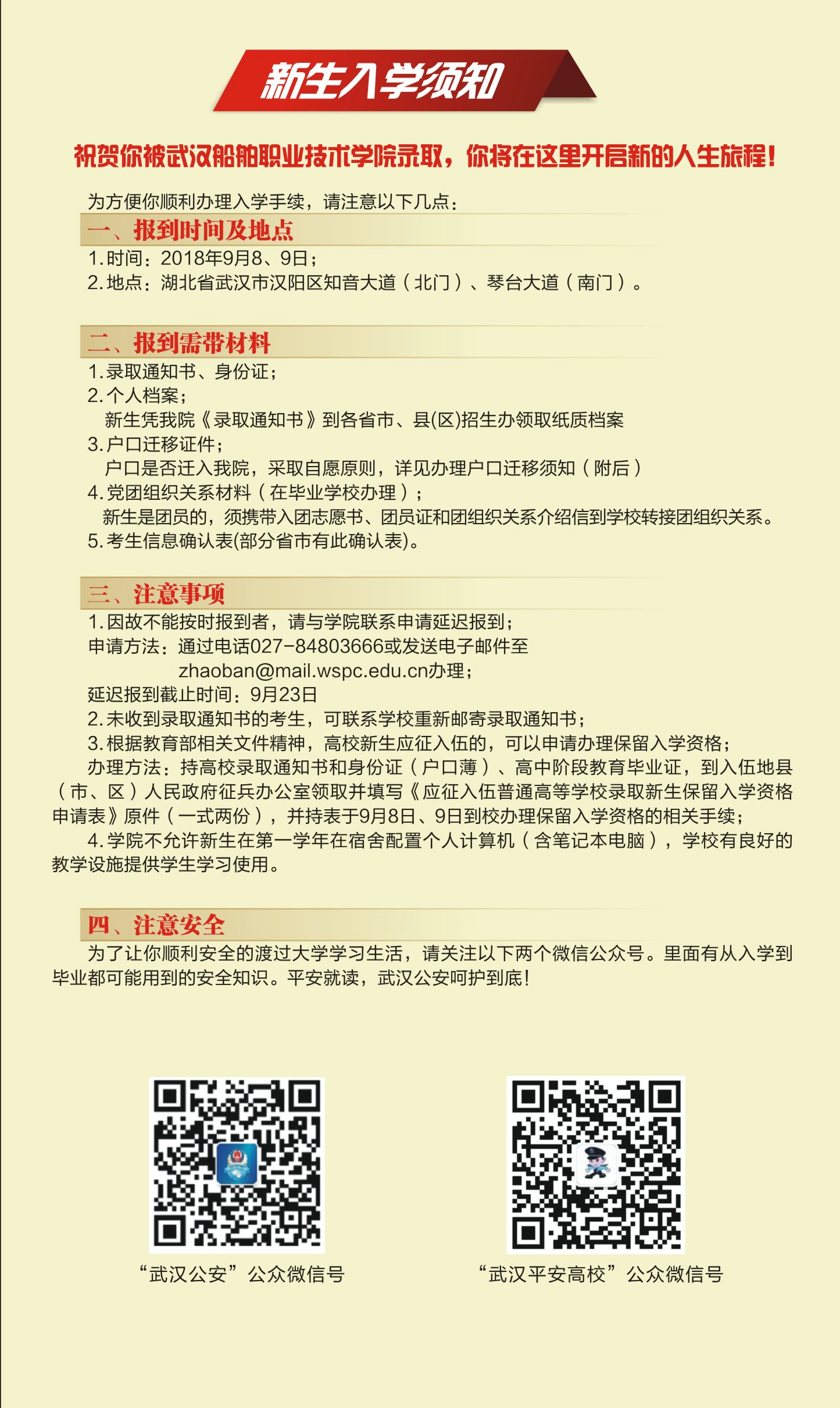关于武汉船院2018年新生提前报到住宿问题的公告